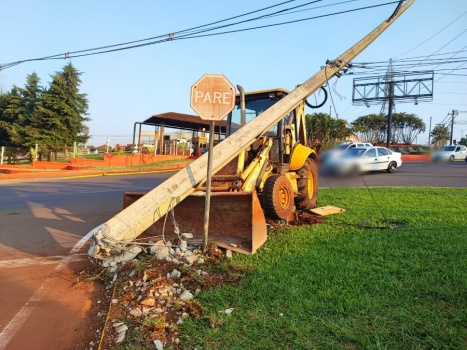 Um acidente foi registrado no fim da tarde desta segunda-feira (25), no cruzamento da Avenida Senador Attílio Fontana com a Rua dos Pioneiros, em Toledo. A colisão envolveu uma Pá Carregadeira e um veículo Honda CRV. Dois postes de iluminação pública ficaram destruídos com o acidente.