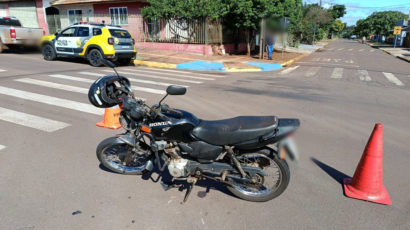 Pai e filho ficaram feridos em um acidente de trânsito registrado por volta das 13h00 desta quinta-feira (29), no cruzamento das ruas Félix da Cunha e Emílio Dietrichkeit, no Jardim Europa, em Toledo. A colisão envolveu uma motocicleta Honda CG 150, ocupada por pai e filho, e uma caminhonete GM S10.