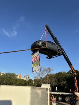 As atividades do Feirão do Imposto do Cojem da ACIT seguiram, no último domingo (25), com o içamento de veículo, no Lago Municipal de Toledo. Quem passou pelo local pode conferir de perto modelos como o T-Cross e o Taos 2025, da Fancar; um pulverizador da Camagril; além de uma moto modelo YZF-R3 e uma lancha FS 290 Wide, da Sodder Motos e Náutica Yamaha.