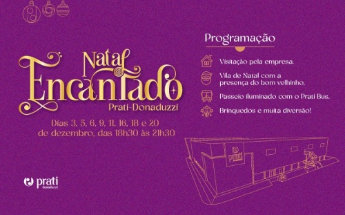 O evento é gratuito e contará com visitação na casa do bom velhinho e nas principais áreas da empresa, brinquedos infláveis, pipoca e algodão doce. Para completar a atração de Natal, o Prati Bus iluminado fará um tour pela cidade, levando 40 passageiros por viagem. O trajeto inclui um passeio saindo da Prati-Donaduzzi às 19h, 19h30, 20h e 20h30, retornando em seguida à empresa.