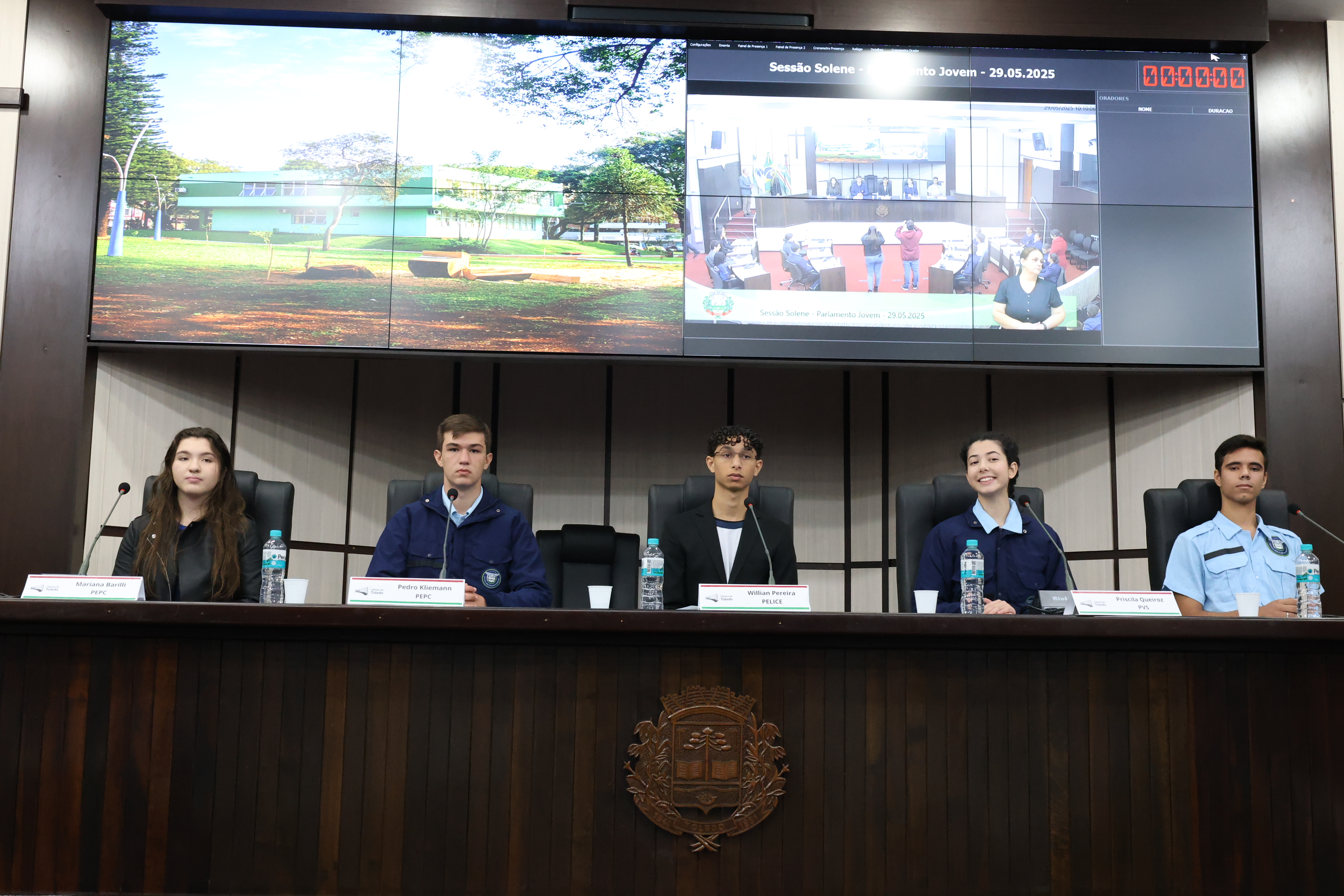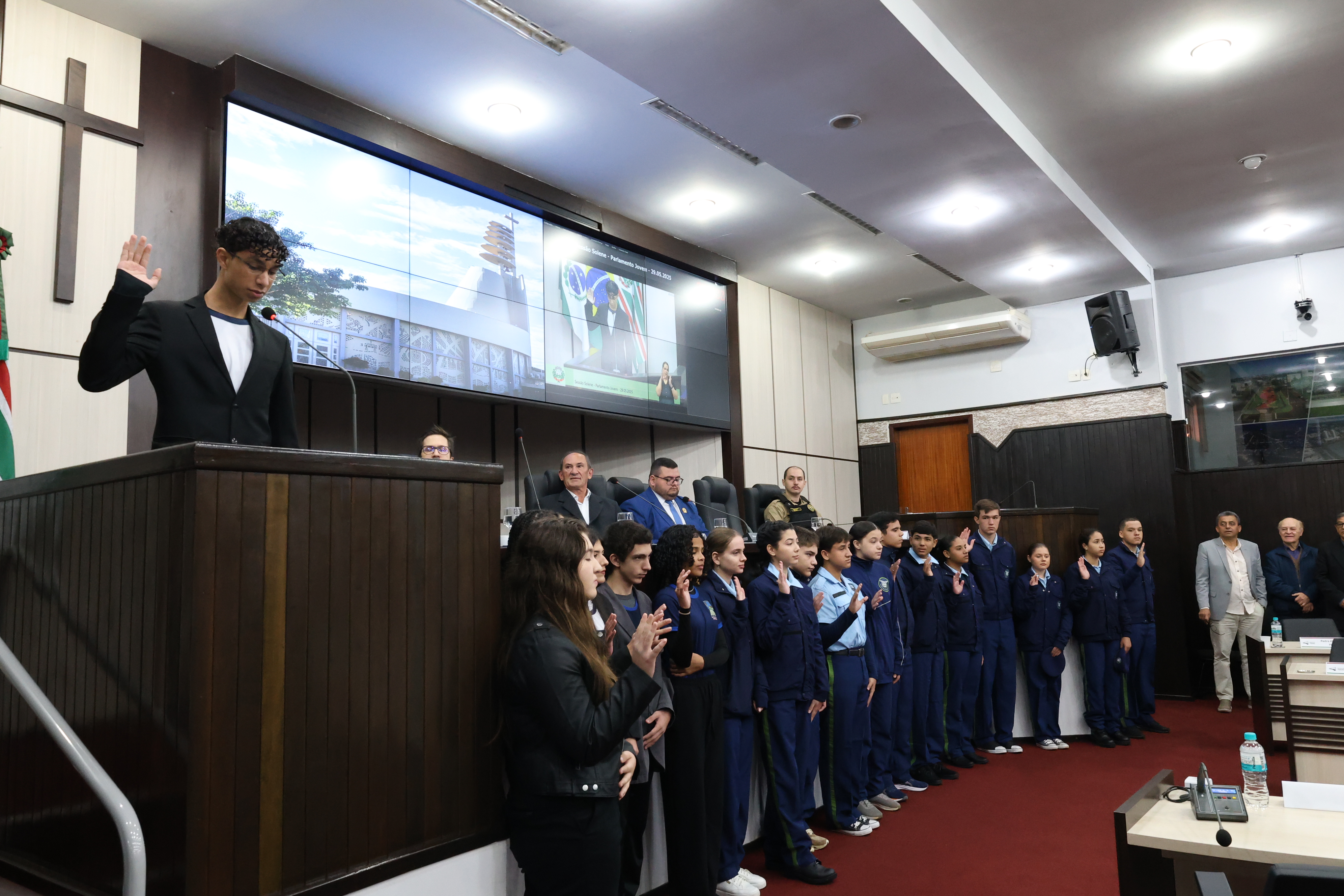 Durante Sessão Preparatória e a Sessão Solene de Posse, os vereadores mirins elegeram presidente e Mesa Diretora do Parlamento Jovem. Willian Samuel Maia Pereira, do Colégio Senador Atílio Fontana, foi eleito presidente; Pedro Miguel Kliemann, do Colégio Cívico-Militar João Arnaldo Ritt, ocupará a cadeira de 1° vice-presidente; Priscila Liz Queiroz, do Colégio Cívico-Militar Luiz Augusto Moraes Rego, será a 1ª secretária; Mariana Gabriely Santos Barilli, do Colégio Senador Atílio Fontana, assume o cargo de 2ª vice-presidente; e Gustavo Cesário Delfino, do Colégio Cívico-Militar Luiz Augusto Moraes Rego, foi escolhido como 2° secretário.