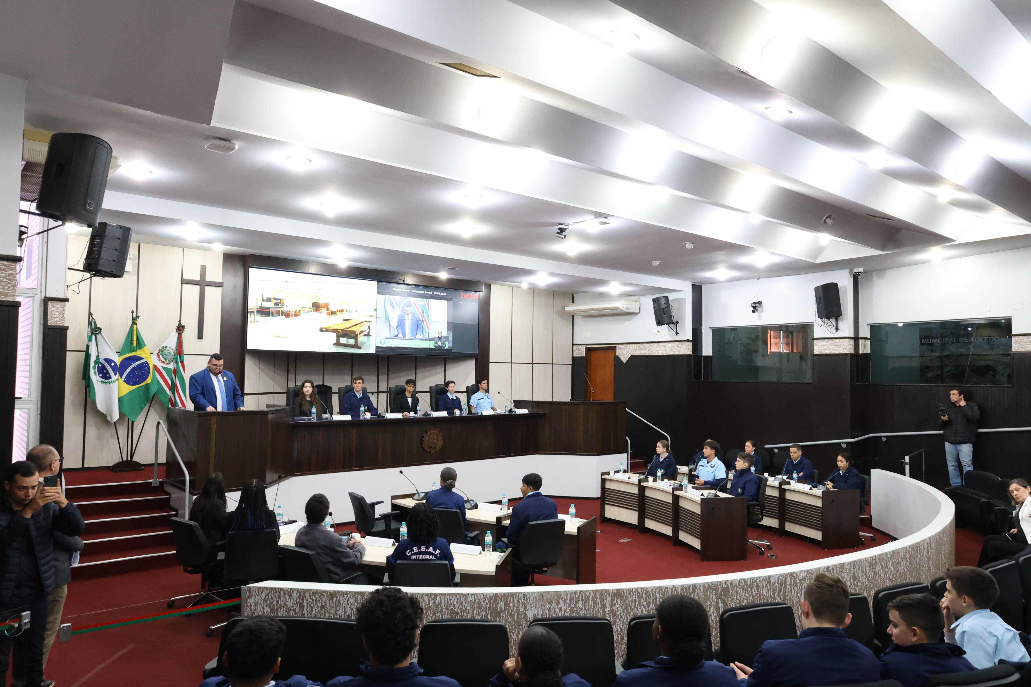 O presidente Gabriel Baierle comandou a sessão até a posse do Parlamento Jovem. Em seu momento de fala, o chefe do Legislativo destacou a coragem dos participantes da dinâmica eleitoral. “Quero parabenizar vocês, vereadores mirins e todos que participaram, pela coragem de colocar seus nomes à disposição, encarar uma campanha e colocar no debate as suas propostas. É um programa que incentiva a nossa democracia e fortalece a cidadania. Também, não posso deixar de falar, da construção de novas lideranças. Isso é importantíssimo. Aqui teremos, nos próximos capítulos desse programa, grandes debates e grandes proposições que, com certeza, nascerão grandes projetos para que a gente possa trazer ao debate dos nossos vereadores e vereadoras da Câmara Municipal”, afirmou Baierle.