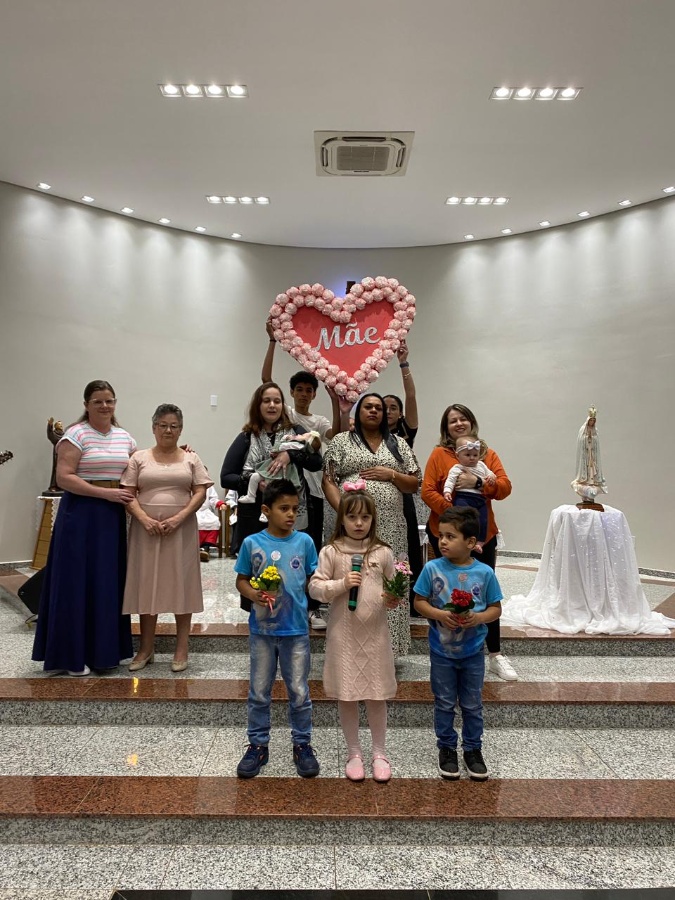 Durante as celebrações, as mães da comunidade foram homenageadas com cantos especiais e momentos de oração.