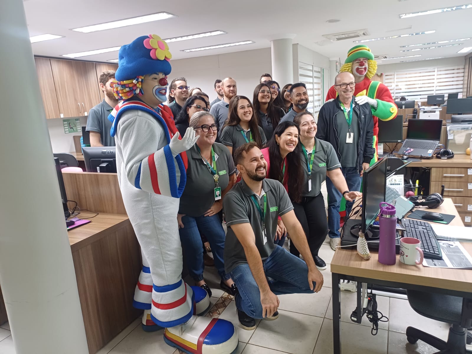 Os palhaços Patati e Patatá visitaram a Sede Administrativa da Unimed Costa Oeste e o Hospital Geral da Unimed (HGU), em Toledo, na tarde desta segunda-feira (28), marcando o último dia da dupla na cidade. Durante a passagem, eles percorreram a recepção, o setor de oncologia, a pediatria, o pronto-socorro, entre outros locais da unidade.