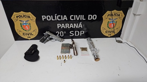 Durante a busca, os agentes da 20ª Subdivisão Policial de Toledo (20ª SDP) encontraram um revólver calibre .38 com numeração adulterada, carregado com seis munições, além de uma arma de brinquedo, uma porção de maconha e material para embalar drogas.