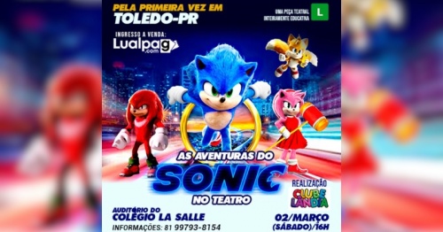 Peça teatral 'As Aventuras do Sonic' será neste sábado no auditório do Colégio La Salle! Saiba como assistir