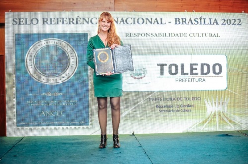 Pelo segundo ano consecutivo, Toledo será honrada com o Certificado de Responsabilidade Cultural Nelson Rodrigues, concedido pela Agência Nacional de Cultura, Empreendedorismo e Comunicação (Ancec). A cerimônia de entrega, com coquetel e jantar de encerramento, será na próxima segunda-feira (13), às 20h, no Clube Naval, em Brasília.