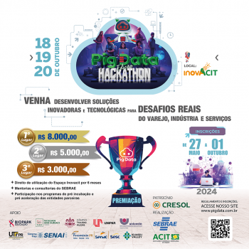 O PIG DATA – Hackathon, com o tema “Desafios do Varejo/Indústria e Serviços”. será realizado de 18 a 20 de outubro no espaço Inovacit, anexo