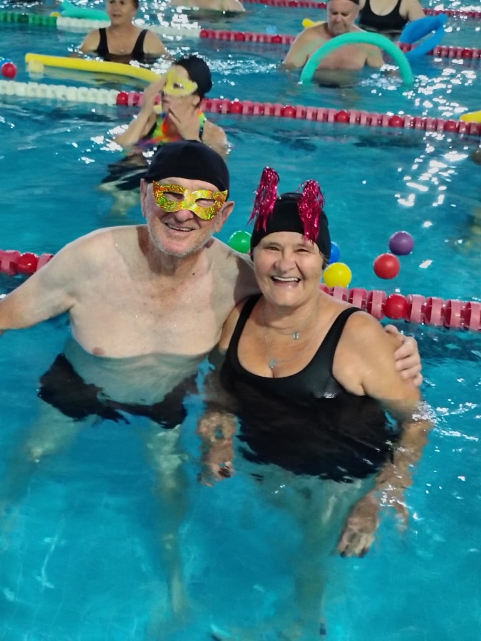 A Piscina Municipal Claus Fuchs, localizada no Centro Olímpico Arnoldo Bohnen, mergulhou na folia nesta semana (24 e 25 de fevereiro) com o evento “Carnaval da Hidroginástica”, reunindo alunos de todas as idades em uma celebração repleta de música, energia e descontração. As aulas especiais, que seguem a tradição das temáticas trabalhadas há 13 anos, foram embaladas por marchinhas carnavalescas e sucessos do axé baiano, garantindo momentos de diversão e interação entre os participantes.