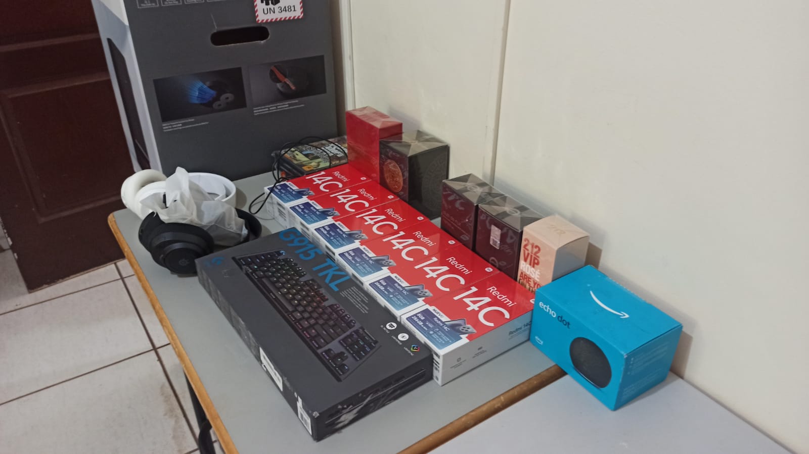 Já no Uno, abordado pelos agentes no trevo da Avenida Egydio Jeronymo Munaretto com a rodovia PR-182, a fiscalização encontrou robôs aspiradores, celulares, fones de ouvido, perfumes, um mouse e uma echo dot.
