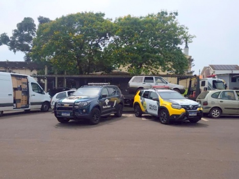PM e Receita Federal localizam depósito de contrabando em Toledo e apreendem vários veículos