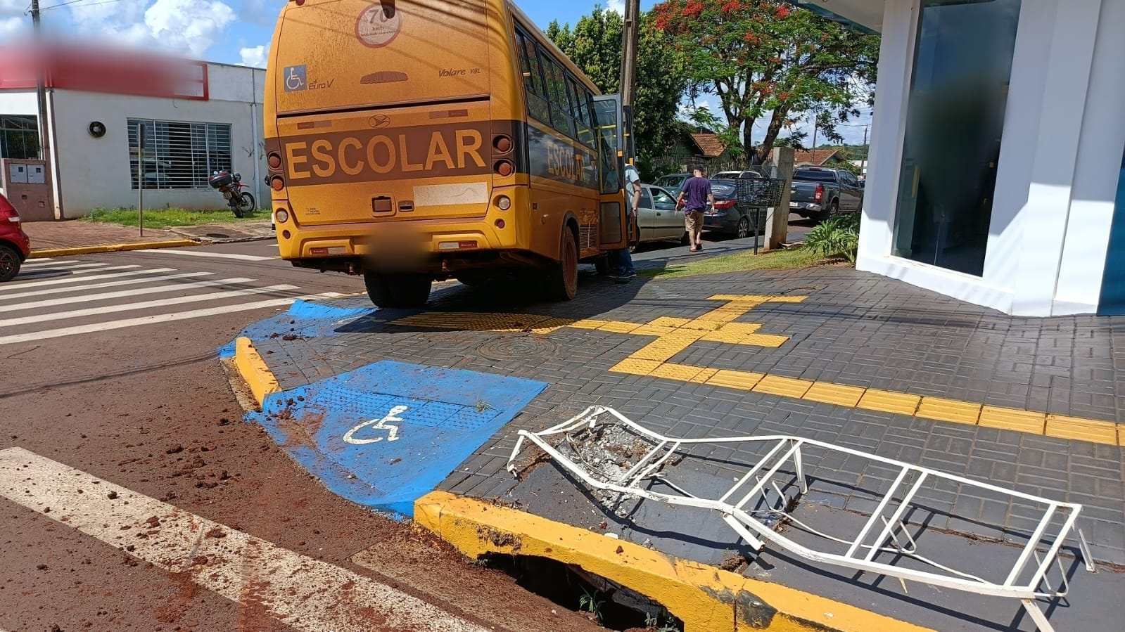 Pneu estoura, e micro-ônibus escolar atinge dois carros estacionados em Toledo