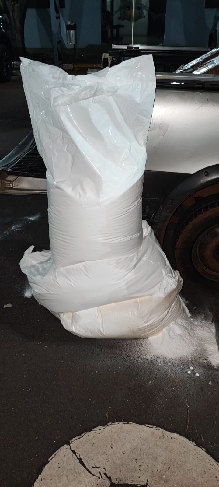 Durante a vistoria, os policiais verificaram que o ano do veículo não correspondia ao modelo visualizado. Na sequência, foram encontrados 50 fardos de substância análoga à maconha, que totalizaram 562 quilos, parte no interior e parte na carroceria do automóvel. Além disso, havia três caixas de papelão contendo sacos plásticos com uma substância branca ainda não identificada, que somaram 72 quilos.
