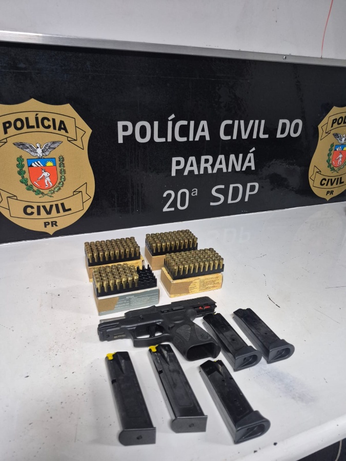 A Polícia Civil do Paraná (PCPR) cumpriu no início da manhã desta terça-feira (20) um mandado de busca e apreensão em Toledo, no âmbito de uma investigação em andamento, resultando na apreensão de arma de fogo e munições. A ação foi realizada por duas equipes da 20ª Subdivisão Policial de Toledo (20ª SDP), em cumprimento a ordem judicial expedida pelo Juiz das Garantias da 2ª Vara Criminal de Toledo. A apreensão ocorreu na Linha Peabiru, no interior do município.