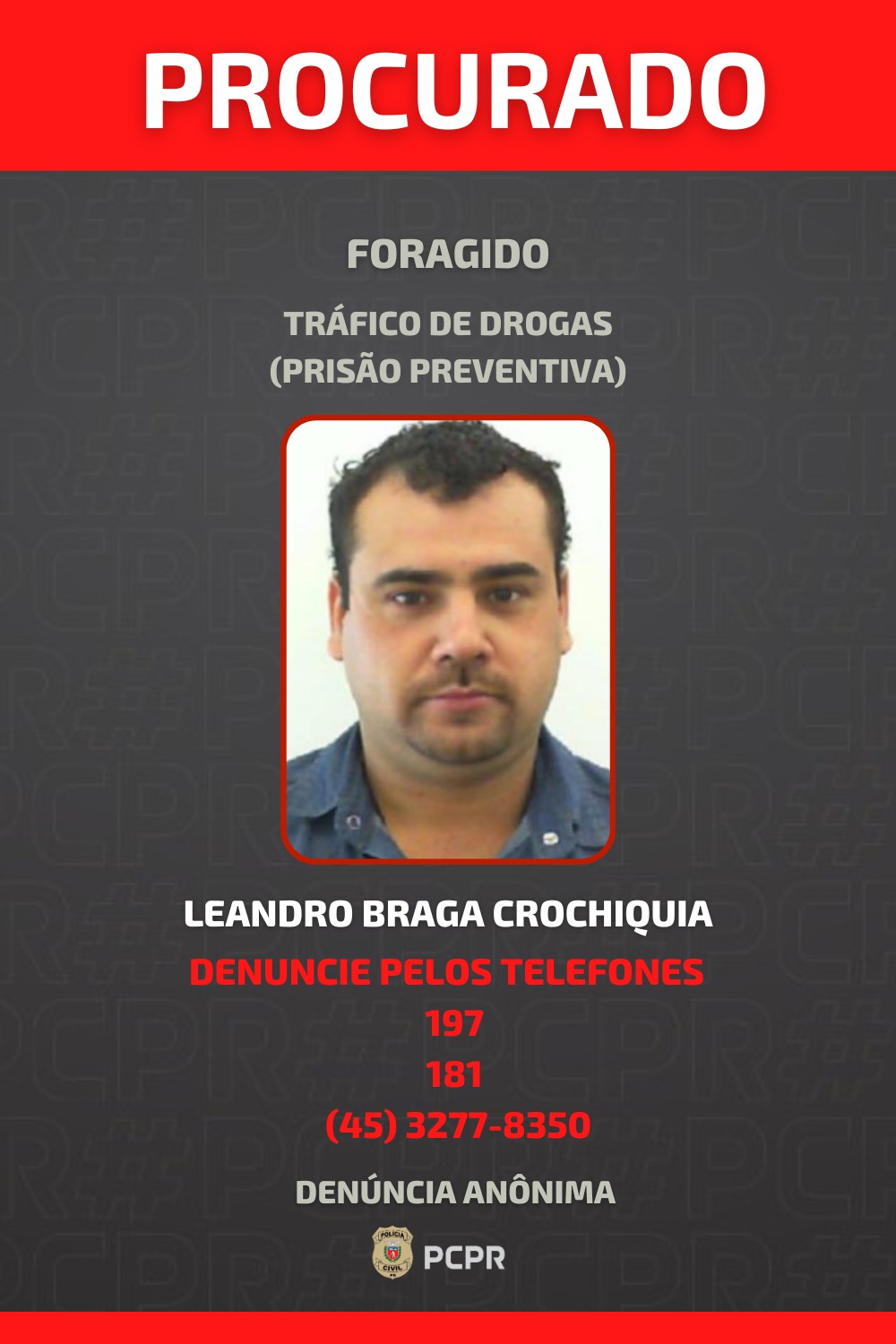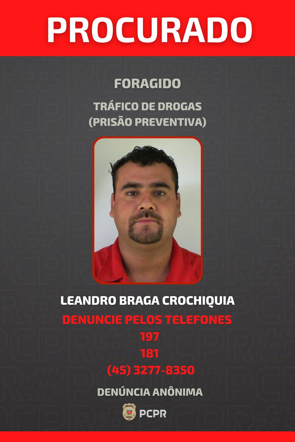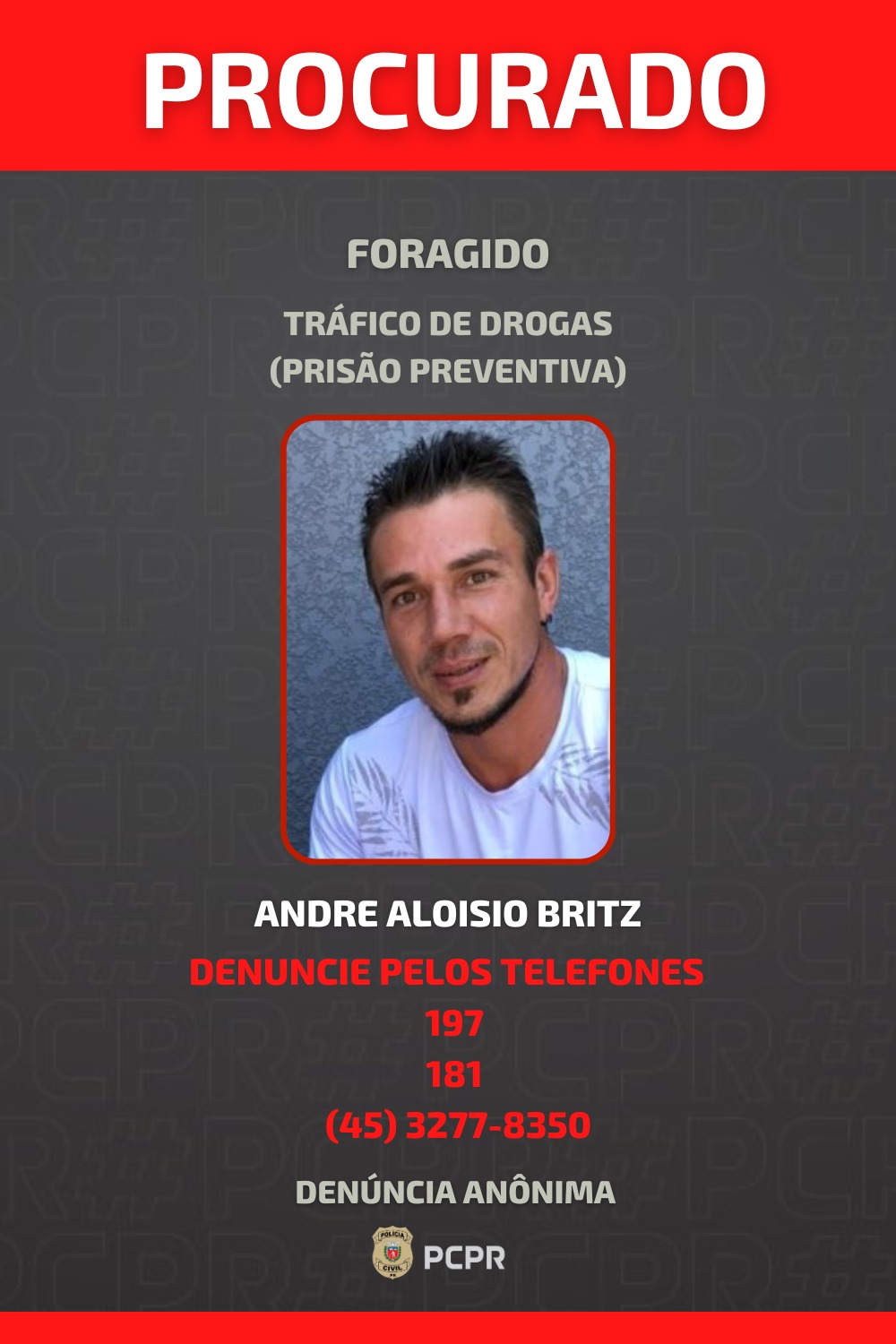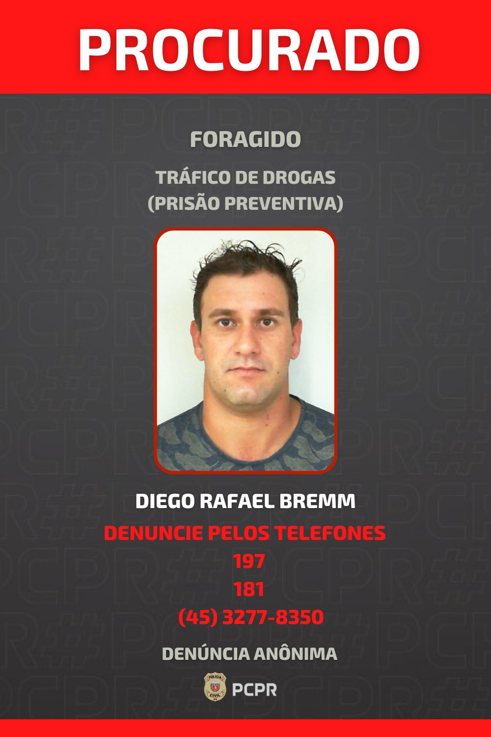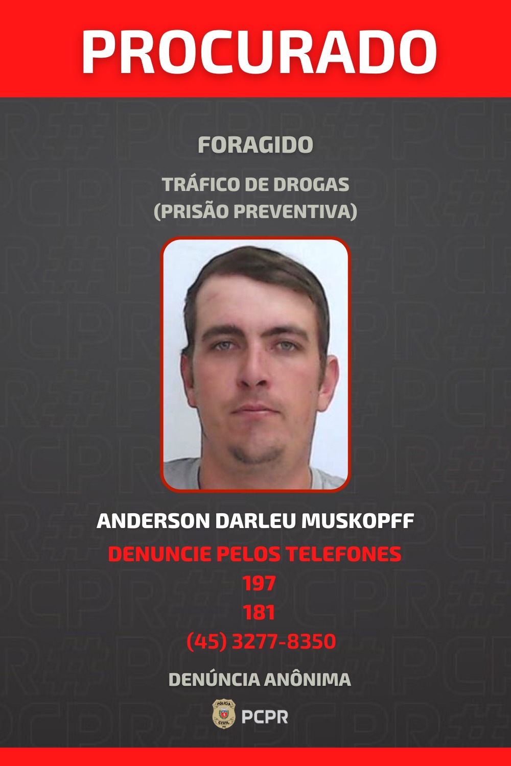 A Polícia Civil mantém diligências em curso para capturar os procurados, que foram identificados como Alex Sandro Aparecido da Silva, Diego Rafael Bremm, Anderson Darleu Muskopff, Leandro Braga Crochiquia e André Aloísio Britz. Todos estão vinculados a investigações por crimes relacionados ao tráfico de entorpecentes.