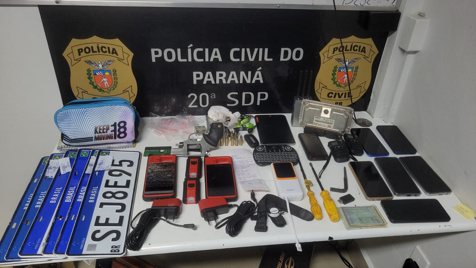 A Polícia Civil do Paraná (PCPR) prendeu em flagrante, em Toledo, um casal suspeito de integrar uma quadrilha especializada no furto de veículos de luxo, com foco em caminhonetes Toyota Hilux. A ação foi coordenada pelo delegado Fábio Freire e resultou na apreensão de uma série de equipamentos utilizados na prática criminosa, como bloqueadores de sinal, decodificadores eletrônicos para clonagem de chaves, uma arma de fogo com numeração extraviada e entorpecentes.