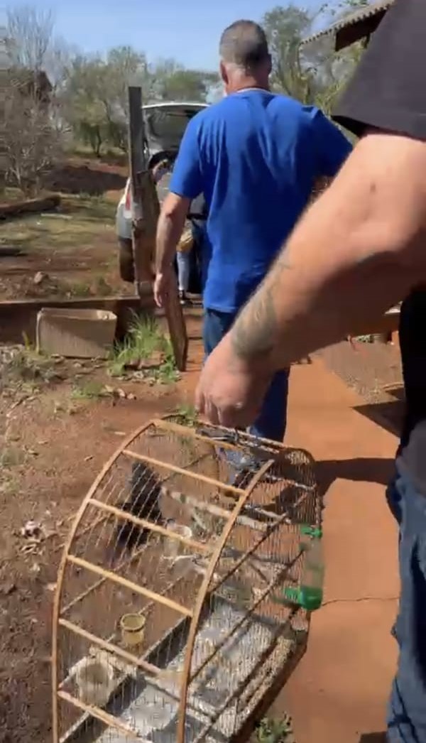 Durante o resgate, a equipe constatou um cenário de abandono e sofrimento animal. Entre os cães e gatos recolhidos estavam uma cadela Pitbull debilitada com filhotes recém-nascidos, outro Pitbull incapaz de se levantar, um casal de buldogues franceses — sendo um com problemas oculares — e uma gata prenha em estado de desnutrição. Nenhum alimento adequado foi encontrado no local. Todos foram encaminhados a uma clínica veterinária para tratamento. As aves incluíam sete pássaros silvestres sem documentação, entregues ao Instituto Água e Terra (IAT), e alguns encontrados mortos em gaiolas. Além disso, cerca de 50 galos de briga foram localizados, dois deles feridos, junto de uma estrutura de rinha desmontada e apetrechos de treinamento. A falta de registro da propriedade junto à Adapar foi confirmada, e os galos permaneceram no local sob custódia de terceiros.