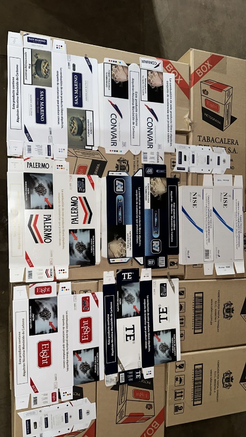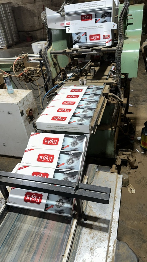 As embalagens encontradas no galpão da fábrica ostentavam logotipos “Eight”, “Palermo”, “R7” e “San Marino”, de modo que eram falsificadas marcas tradicionalmente vendidas no Paraguai, e cuja importação é proibida por lei.