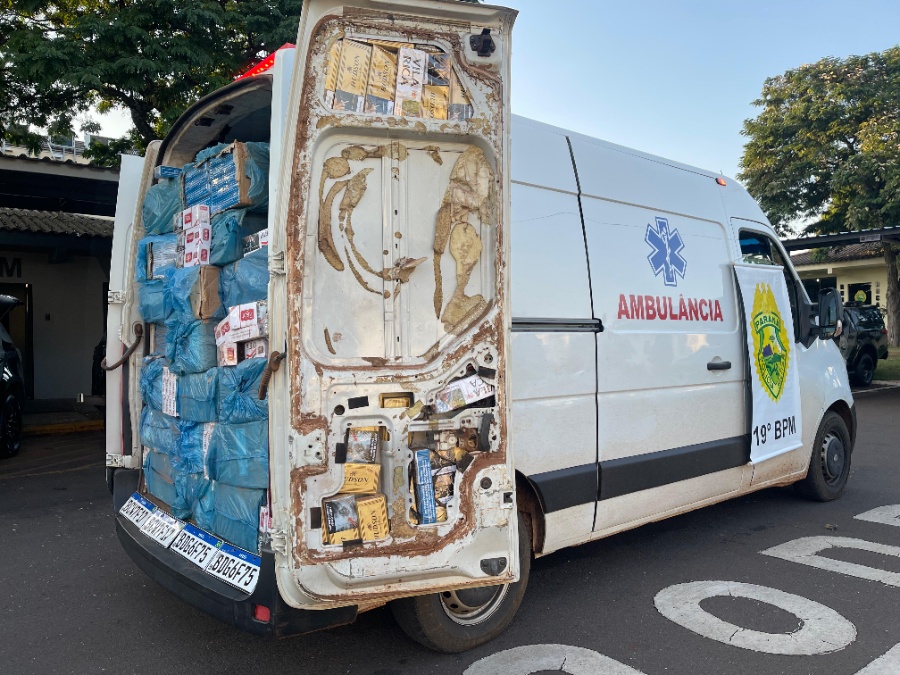 Durante a fiscalização, os policiais descobriram que a ambulância, na verdade, estava sendo utilizada para o transporte ilegal de cigarros. No interior do veículo foram encontradas 170 caixas de cigarros contrabandeadas, além de diversas placas falsas utilizadas para camuflar a verdadeira identidade do veículo.
