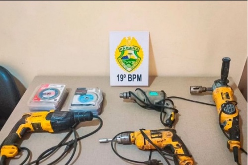 Entre os objetos recuperados estavam duas furadeiras de impacto, um martelete eletropneumático, uma esmerilhadeira angular e 20 discos diamantados de corte. Apesar das buscas nas imediações, o suspeito não foi localizado.