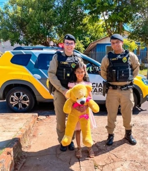 No último sábado, 16, a Polícia Militar (PM) de Toledo proporcionou uma surpresa inesquecível para a jovem Keli, de nove anos, durante sua festa de aniversário. Fã da Corporação, a menina recebeu a visita dos soldados Tomassoni e Celso Luiz, que atenderam a um pedido especial feito pelo pai da aniversariante.