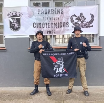 Dois policiais do 19º Batalhão da Polícia Militar de Toledo (19º BPM) concluíram na última quarta-feira, 11 de junho, o VII Curso de Cinotecnia da Polícia Militar do Paraná (PMPR), promovido pela Companhia Independente de Operações com Cães (CIOC), em Curitiba-PR.