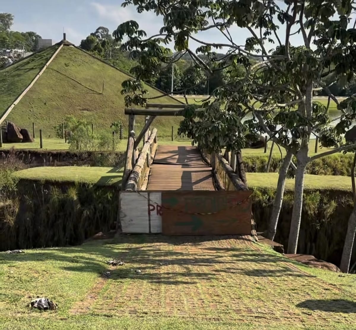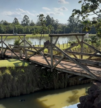 Ponte do Selo do Amor, no Parque do Povo Luiz Cláudio Hoffmann, é interditada para manutenção preventiva
