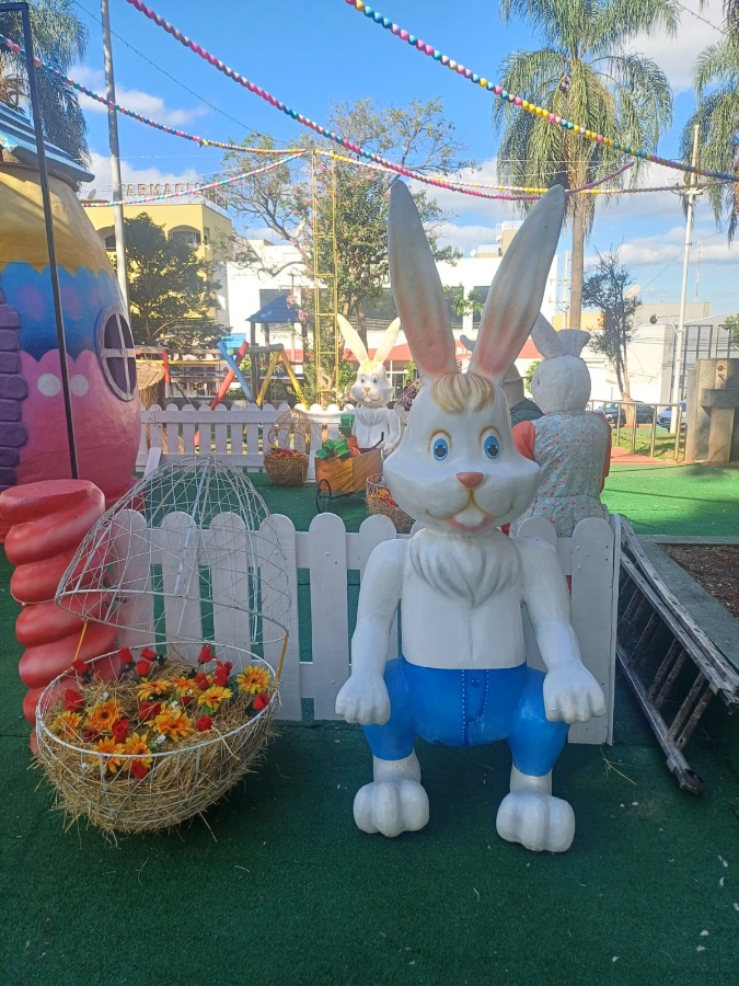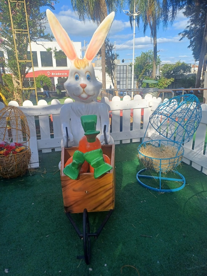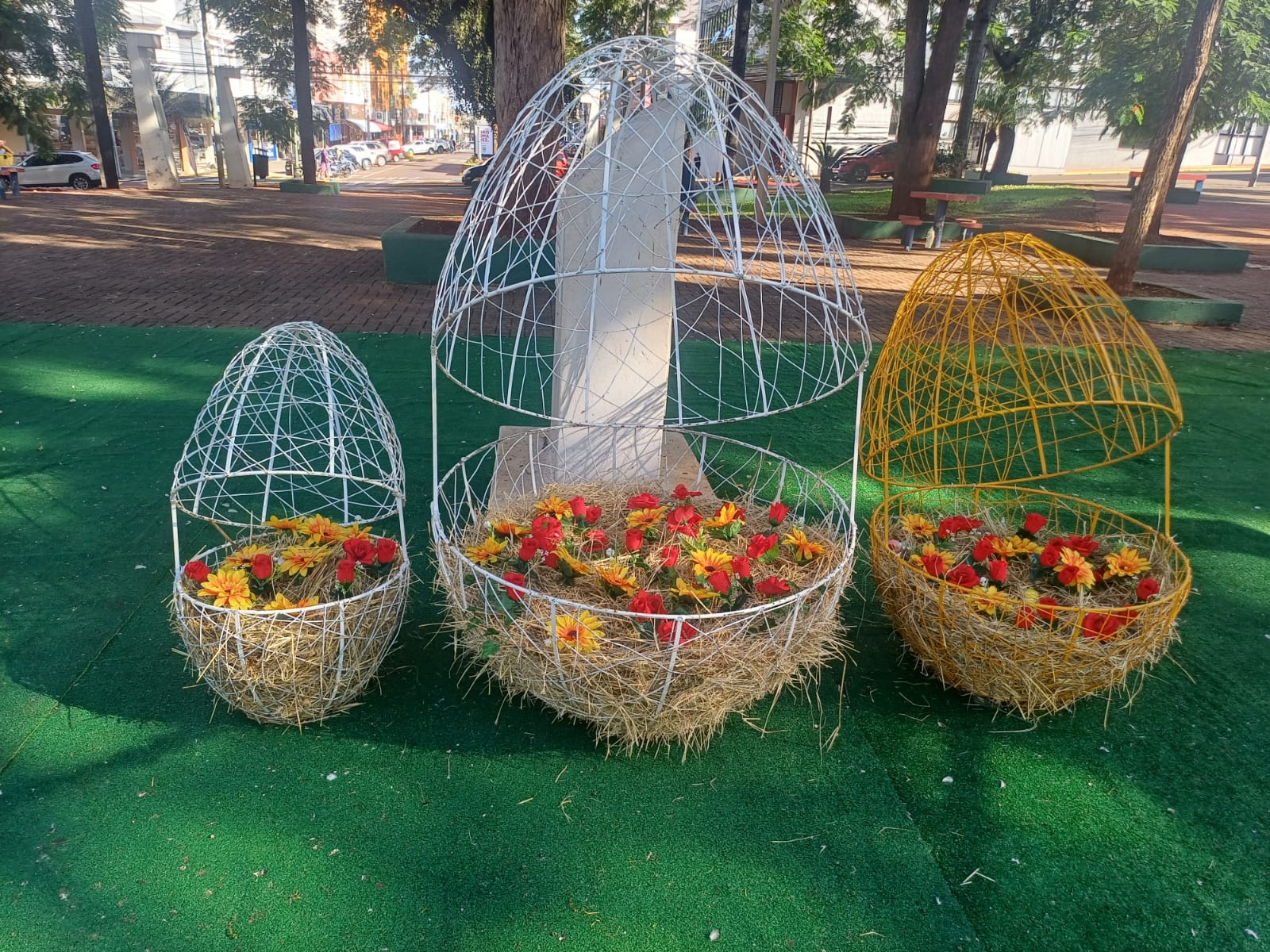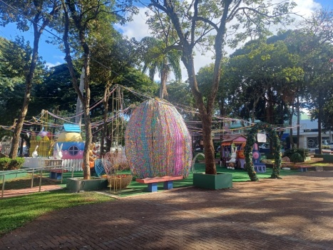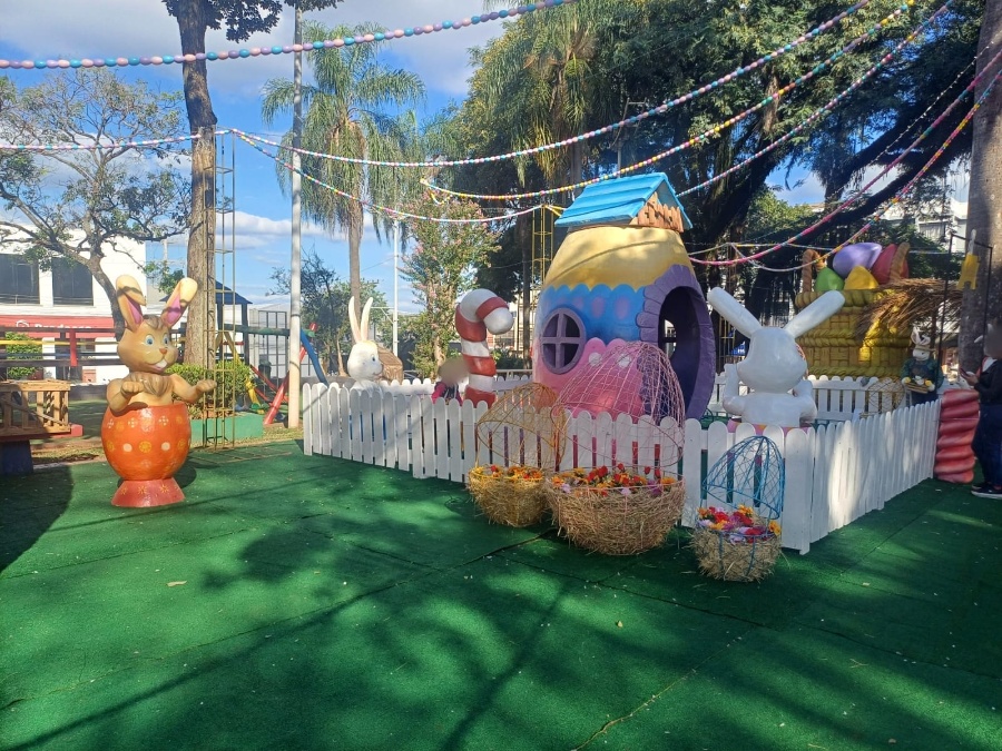Além da praça, o Parque Ecológico Diva Paim Barth (Lago Municipal) também recebeu elementos decorativos alusivos à Páscoa, ampliando os espaços voltados ao público durante esse período.