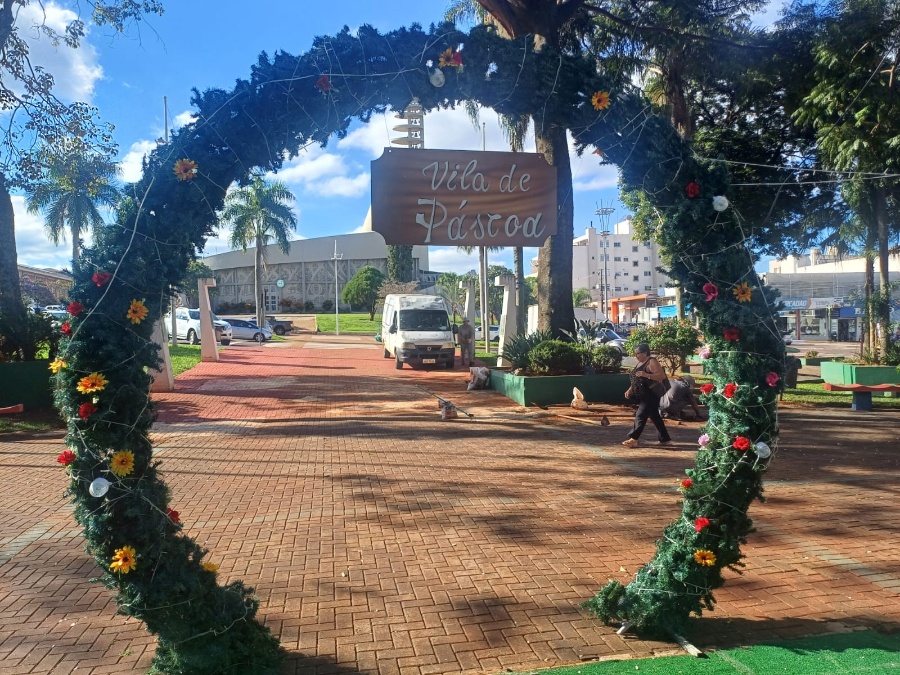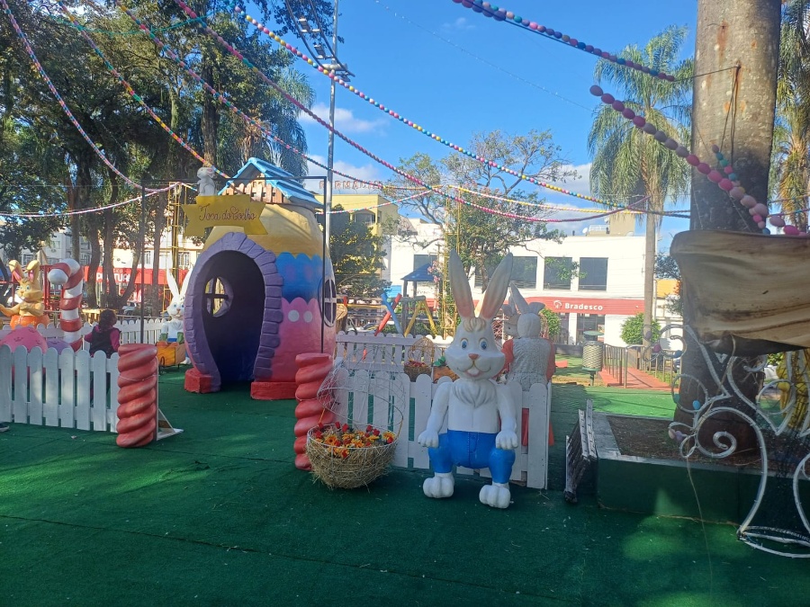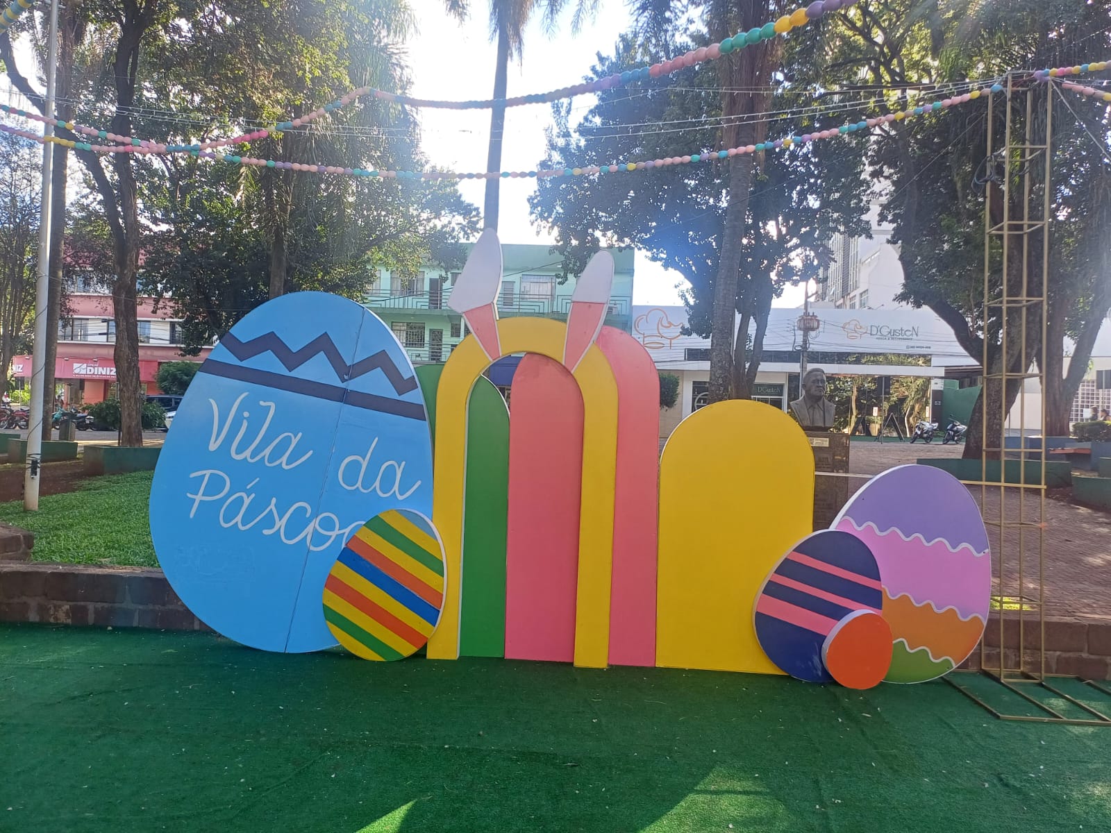 A decoração da Vila de Páscoa está praticamente finalizada na Praça Willy Barth, no Centro de Toledo, e já atrai famílias para fotos e momentos de interação com o ambiente temático. Entre os principais atrativos estão a casa do coelho, um ovo gigante e diversas esculturas inspiradas na festividade.