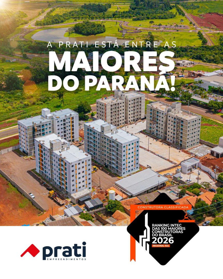 No cenário mais amplo, a Prati também aparece na 35ª posição na região Sul e na 127ª colocação nacional, resultados que reforçam o crescimento estruturado da empresa, conforme destacou Gustavo Prati, sócio-diretor da empresa. “Estar entre as maiores construtoras do Paraná mostra que estamos evoluindo com consistência. Fruto de planejamento estratégico, disciplina operacional e de uma equipe alinhada com os objetivos de crescimento sustentável. Seguimos rumo ao próximo objetivo que é estar entre as 100 maiores do país”, destacou Gustavo Prati.