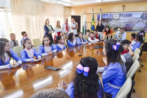O patrão do CTG, Romualdo Strefling, agradeceu ao gestor municipal e a sua equipe pela acolhida. Salientou que as crianças estavam ansiosas em vir até a Prefeitura, pois a conquista foi fruto de muito esforço delas, dos pais e dos professores. “Elas estavam eufóricas para virem aqui e que bom que foi possível. Os integrantes tiveram muitos ensaios, podemos dizer que sacrificaram suas férias escolares em prol deste evento. Obrigado por recebê-las prefeito [Beto Lunitti] e por ser um grande incentivador do tradicionalismo”, concluiu.