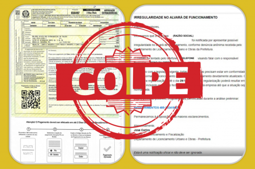 Empresários dos mais diversos ramos estão recebendo e-mails falsos indicando irregularidades em seu alvará de funcionamento ou relacionado a outras dívidas do CNPJ. Nos documentos os golpistas chegam a reproduzir brasões e características visuais e textuais tentando dar a impressão de autoridade e legitimidade para induzir ao pagamento de supostas taxas ou tributos.