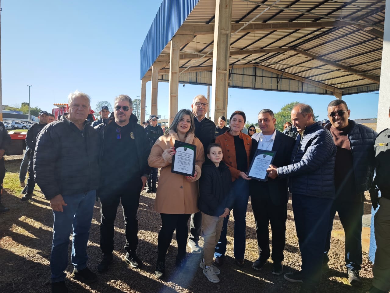 Durante a cerimônia de inauguração do novo pátio municipal, compuseram a frente de honra o deputado federal Dilceu Sperafico, o prefeito Mario Costenaro, o vice-prefeito Lucio De Marchi e os vereadores Gabriel Baierle (presidente da Câmara Municipal), Bruno Radunz e Professor Oséias. Também participaram o secretário de Segurança e Trânsito, Rogério de Lima; o delegado da 20ª Subdivisão Policial, Alexandre Macorin; e o subcomandante do 19º Batalhão da Polícia Militar, major Cesar Sebastião da Silva.