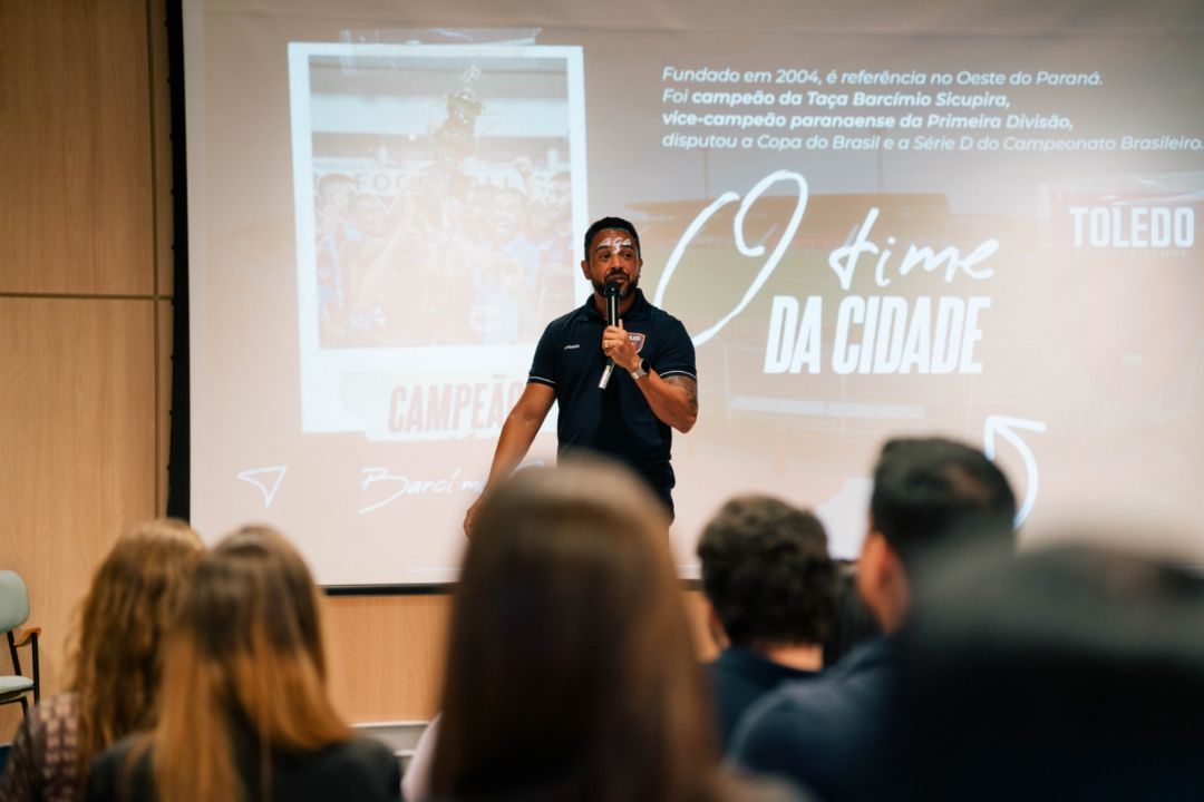 Futebol não é só bola rolando. Futebol é conexão, visibilidade, negócios e movimento econômico. Foi com essa mensagem clara e direta que o presidente do Toledo Esporte Clube (tec), Sebastião Marques, participou de um evento do setor imobiliário realizado na última quarta-feira, 28, no Corporativo Taipas, em Toledo.