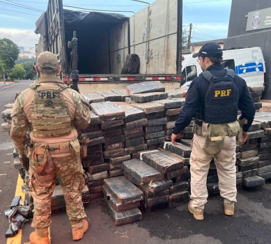 Na madrugada desta quarta-feira (12), a Polícia Rodoviária Federal (PRF) apreendeu uma carreta carregada com mais de cinco toneladas de maconha no município de Toledo. A operação foi realizada pelo Núcleo de Operações Especiais de Fronteira da PRF, que, durante uma fiscalização, identificou a carga ilícita na PR 239, entre Toledo e Assis Chateaubriand.