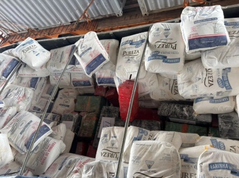 Durante a abordagem, os policiais identificaram indícios de irregularidades e decidiram inspecionar detalhadamente a carga. Ao abrir alguns sacos de farinha, descobriram diversos pacotes ocultos contendo tabletes de maconha.