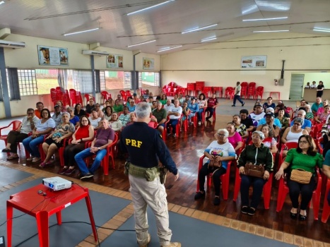A Polícia Rodoviária Federal (PRF) realizou na quarta-feira, 21, uma palestra voltada para idosos no Centro de Revitalização da Terceira Idade (Certi) da Vila Pioneiro, unidade pública municipal que compõe a rede da Política de Assistência Social, no âmbito da Proteção Social Básica do Sistema Único de Assistência Social (Suas).