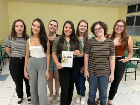 A entrega simbólica foi realizada com os alunos do curso de Letras. "Este exemplar ficará na biblioteca aqui da FAG, para que os nossos alunos do curso de Pedagogia e de Letras possam usar como fonte de estudos e pesquisa aprofundada sobre o léxico, durante a graduação", alerta.