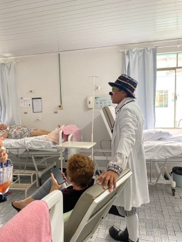 Ele chegou pelos corredores levando cores e alegria. O palhaço ficou encarregado de passar em vários setores da Associação Beneficente de Saúde do Oeste do Paraná (Hoesp) - Hospital Bom Jesus animando pacientes e acompanhantes.