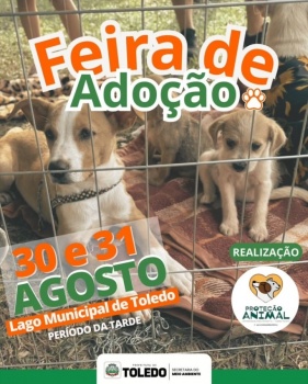 Nos dias 30 e 31 de agosto, sábado e domingo, será realizada uma Feira de Adoção no Parque Ecológico Diva Paim Barth (Lago Municipal de Toledo), das 15h00 até às 18h00. A ação contará com a presença de ONGs e protetores independentes, oferecendo cerca de 30 animais entre cães e gatos, adultos e filhotes, que aguardam por um lar.