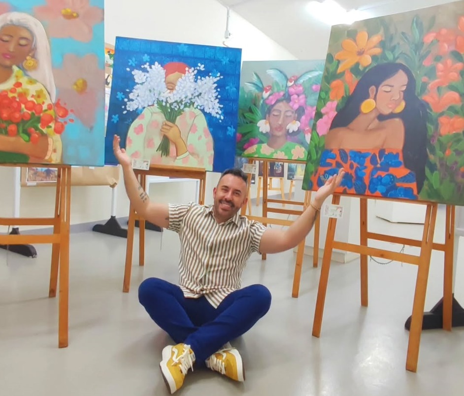 Já a exposição “Flores em Si”, do artista cascavelense Tiago Klin, segue até 17 de outubro. A mostra mergulha na poética do feminino através da linguagem das flores. Cada pintura retrata mulheres de olhos fechados, mergulhadas em si mesmas, em uma proposta simbólica e sensível. Os corpos e vestimentas dialogam com as formas e cores das plantas escolhidas, revelando afetos e narrativas internas.