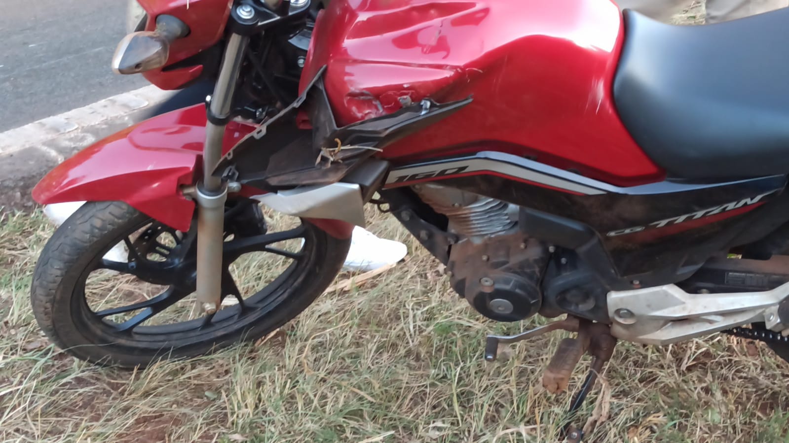 A mulher, de 34 anos, conduzia uma moto CG Titan 160, quando perdeu o controle da direção em uma curva e caiu.