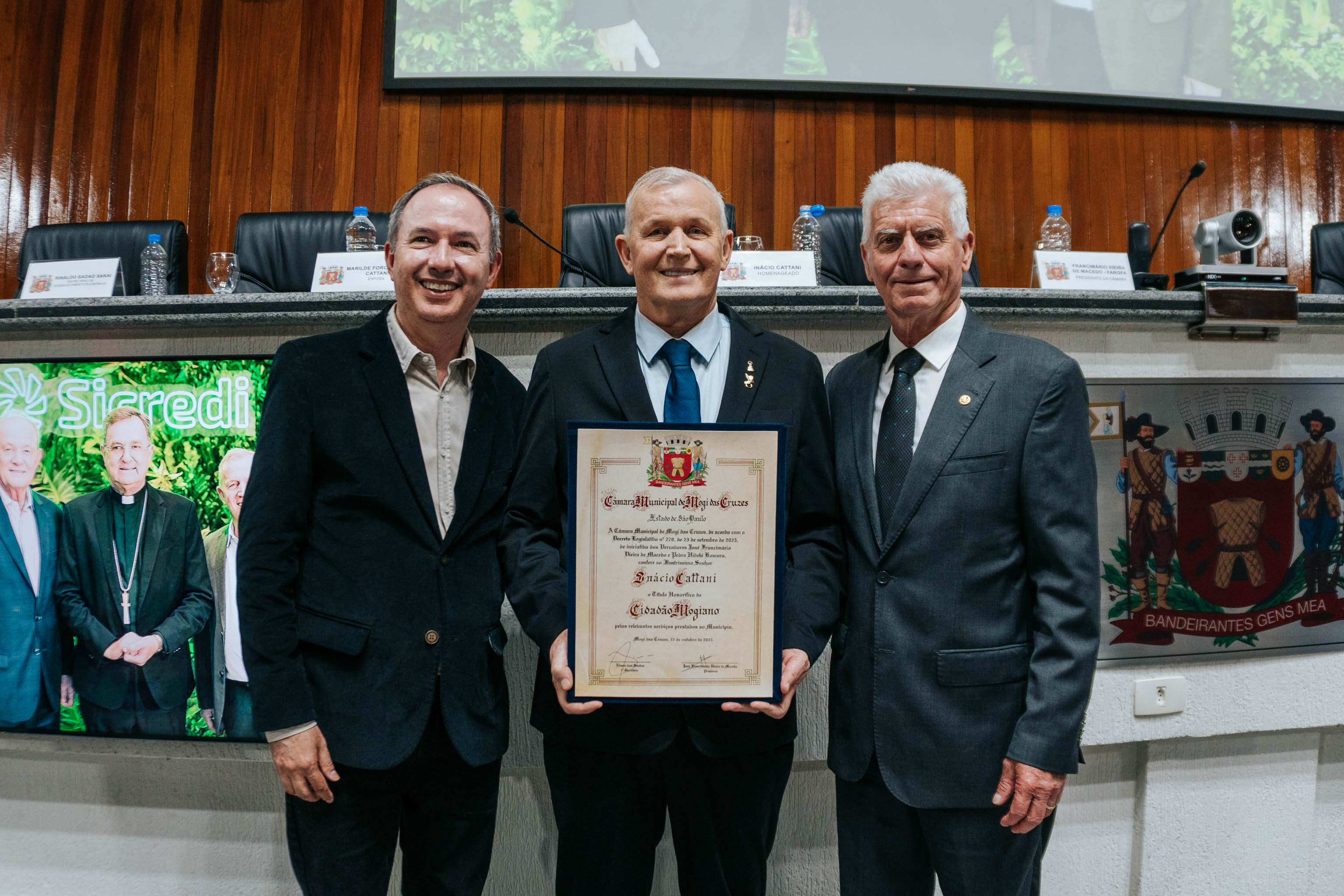O presidente da Sicredi Progresso PR/SP, Inácio Cattani, foi homenageado nesta segunda-feira, 20, com o título de Cidadão Mogiano, em cerimônia realizada na Câmara Municipal de Mogi das Cruzes-SP.