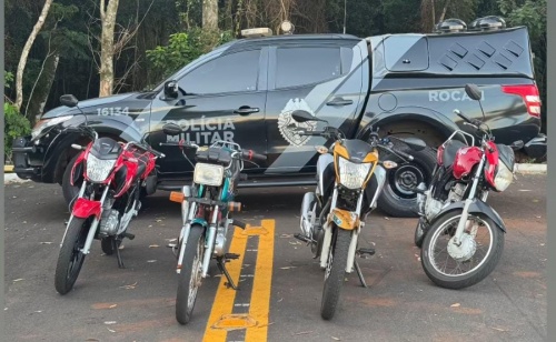 Uma ação de patrulhamento de uma equipe da Rondas Ostensivas Com Apoio de Motocicletas (Rocam) em Toledo, realizada no sábado, dia 01º de fevereiro em um loteamento novo no Jardim Coopagro, resultou na apreensão de quatro motocicletas.