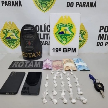 Equipes da Polícia Militar (PM) apreenderam na madrugada da última quinta-feira, 26, um indivíduo com dinheiro e 24 buchas de substância análoga a cocaína, no Jardim Porto Alegre, em Toledo.