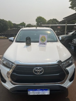 Uma caminhonete Hilux, de cor branca, com placa clonada e suspeita de ser produto de furto, foi apreendida por uma equipe da Rondas Ostensivas Tático Móvel (Rotam) na rodovia BR-467, em Toledo, na manhã de quarta-feira, 11.