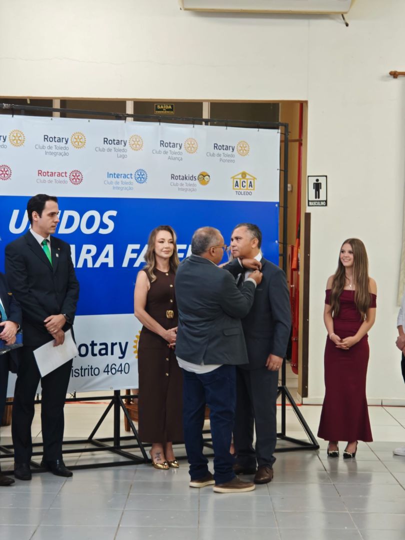 O presidente ainda ressaltou o caráter coletivo da caminhada do Clube. “O Clube não fez isso sozinho. Hoje reunimos aqui clubes afiliados de Marechal Cândido Rondon, Palotina, Assis Chateaubriand, além dos nossos padrinhos do Rotary Club de Cascavel e governadores distritais que nos honram com a presença”, disse, destacando também que o Rotary vive um momento de renovação e segue aberto à participação de novos membros.