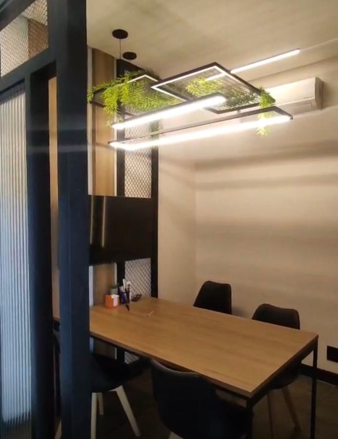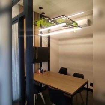 - Mobiliário sob medida para cinco estações de trabalho