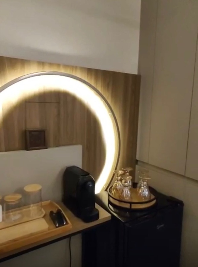 - Frigobar e cafeteira