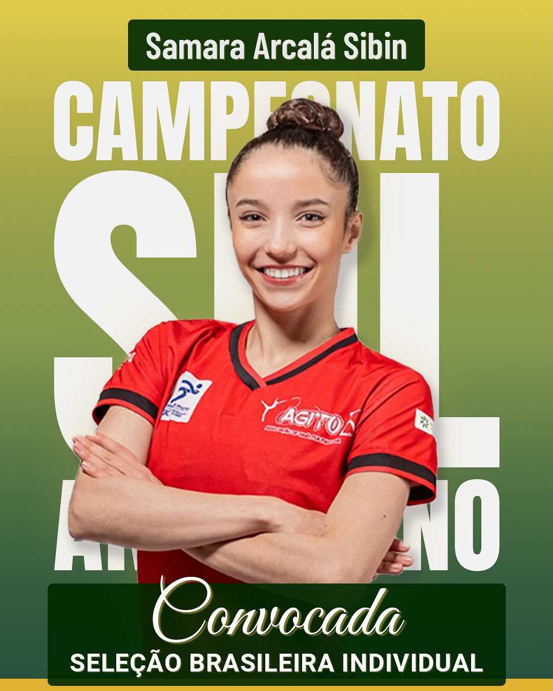 A ginasta Samara Sibin foi convocada para integrar a Seleção Brasileira que disputará o Campeonato Sul-Americano de Ginástica Rítmica (GR), marcado para ocorrer entre os dias 08 e 14 de setembro, em Cochabamba, na Bolívia.